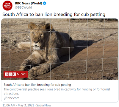 แอฟริกาใต้เปิดเผยแผนการที่จะจำกัดการเพาะพันธุ์สิงโตเพื่อล่าสัตว์หรือเพื่อให้นักท่องเที่ยวสามารถนำลูกสัตว์มาเลี้ยงได้